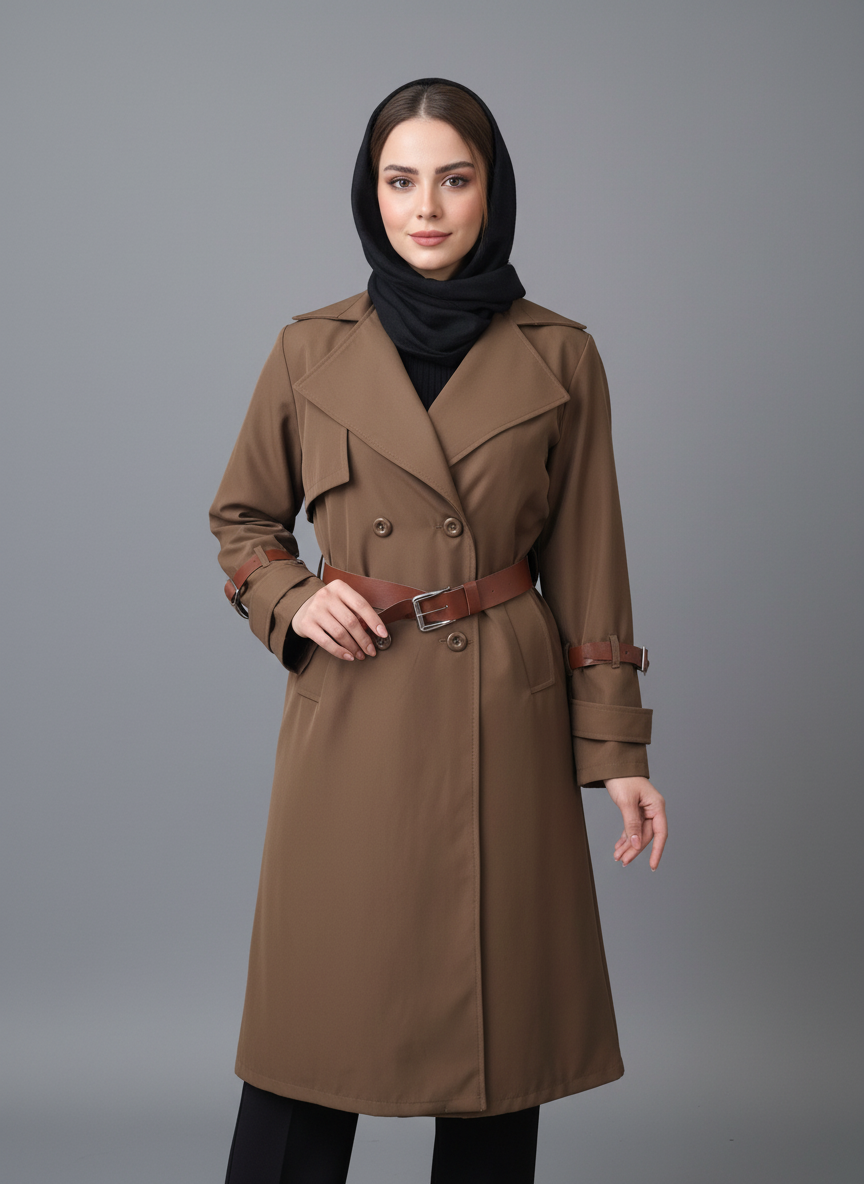 پالتو بارونی کلاهدار بلند تتیس
