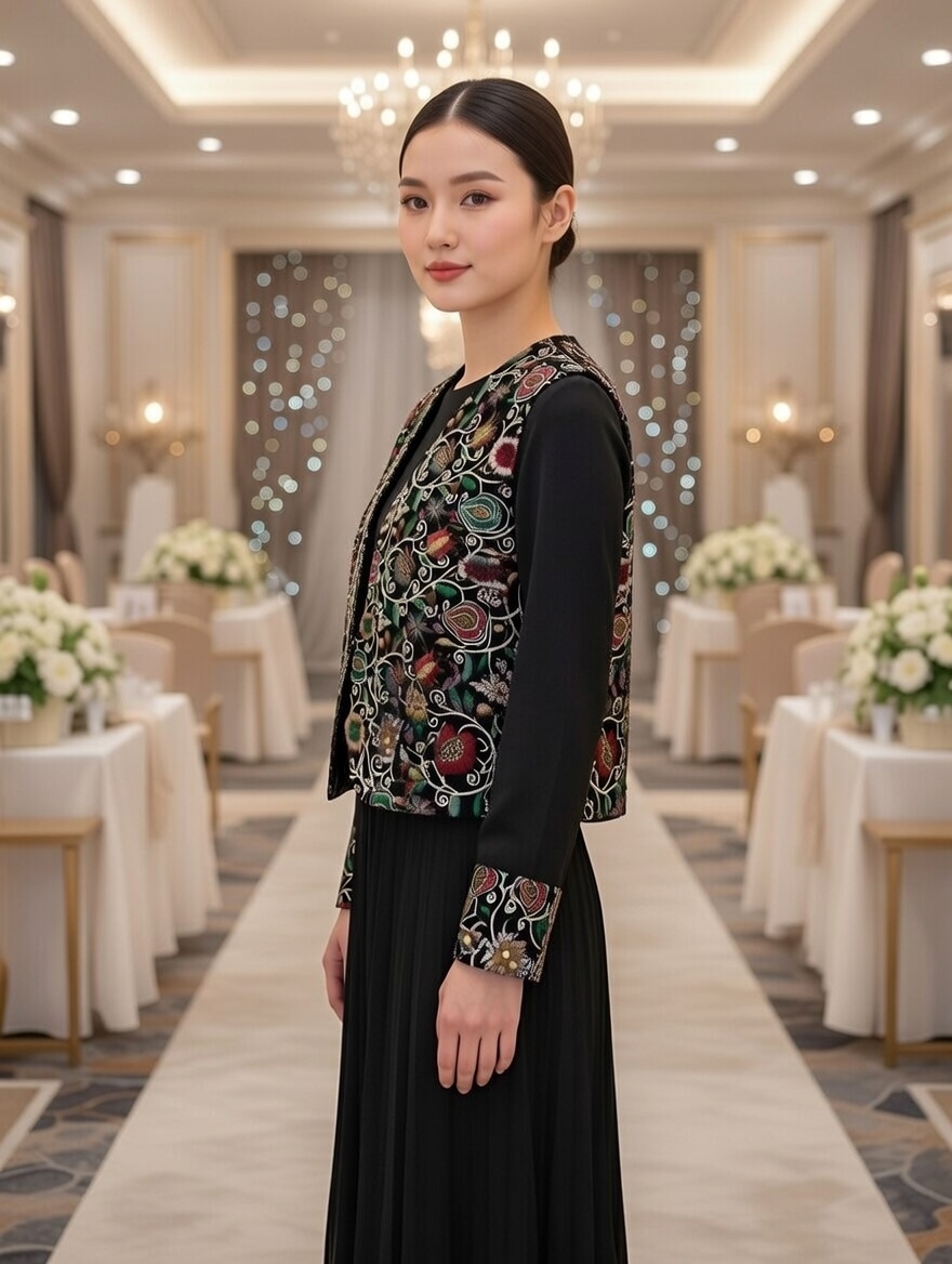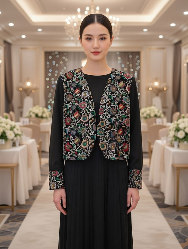 کت و سارافون مجلسی زنانه بسیار شیک و جذاب و مجلسی تن پوش خاص پسندان جنس کت سوزن دوزی با کیفیت جنس سارافون حریر دامن پلیسه ای